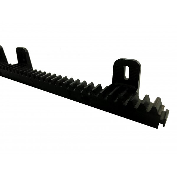 Cremallera de 20 x 20 x 1000 mm de Nylon con alma de acero para puertas correderas de hasta 400 kg. Dentado para piñones de módulo 4. Fácil instalación se puede atornillar directamente en la puerta.