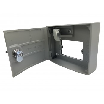 Cajetin de desbloqueo exterior para automatismos enrollable, con palanca desbloqueo, pulsador interior y cierre con llave de seguridad.