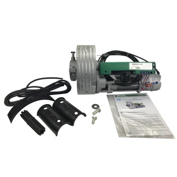 Se suministra con casquillo adaptador para ejes de 48 mm, expansor adaptador para poleas de 220 mm, sistema de desbloqueo interno del motor, cable eléctrico de conexión del motor y manual de instrucciones.