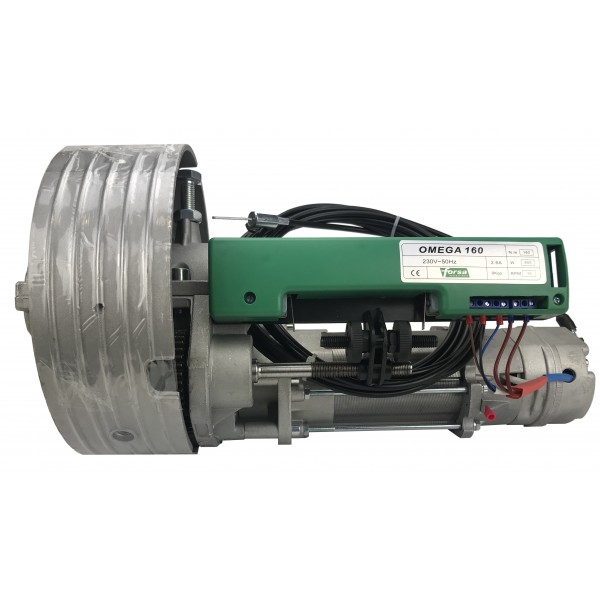 Automatismo sin electrofreno para puertas enrollables con eje de poleas o muelles. Preparado para eje de 60 mm. y poleas de 200 mm., incorpora casquillos adaptadores a ejes de 42 y 48 mm., y expansor de poleas a 220 mm. Aconsejable para puerta de 12 m2. máximo.