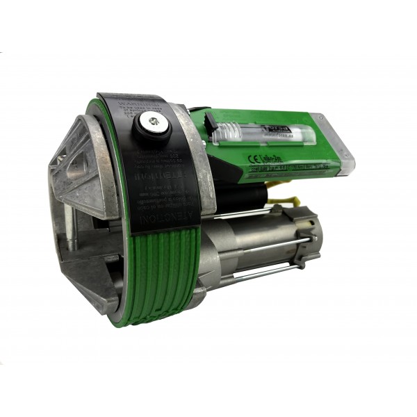 Automatismo sin electrofreno para puertas enrollables con eje de poleas o muelles. Preparado para eje de 60 mm. y poleas de 200 mm., incorpora casquillos adaptadores a ejes de 42 y 48 mm., y expansor de poleas a 220 mm. Aconsejable para puerta de 12 m2. máximo.