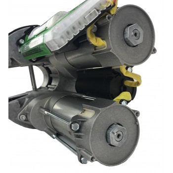 Automatismo de doble bobinado para puertas enrollables con eje de poleas o muelles. Preparado para eje de 60 mm. y poleas de 200 mm., incorpora casquillos adaptadores a ejes de 42 y 48 mm., y expansor de poleas a 220 mm. Aconsejable para puerta de 16 m2. máximo.